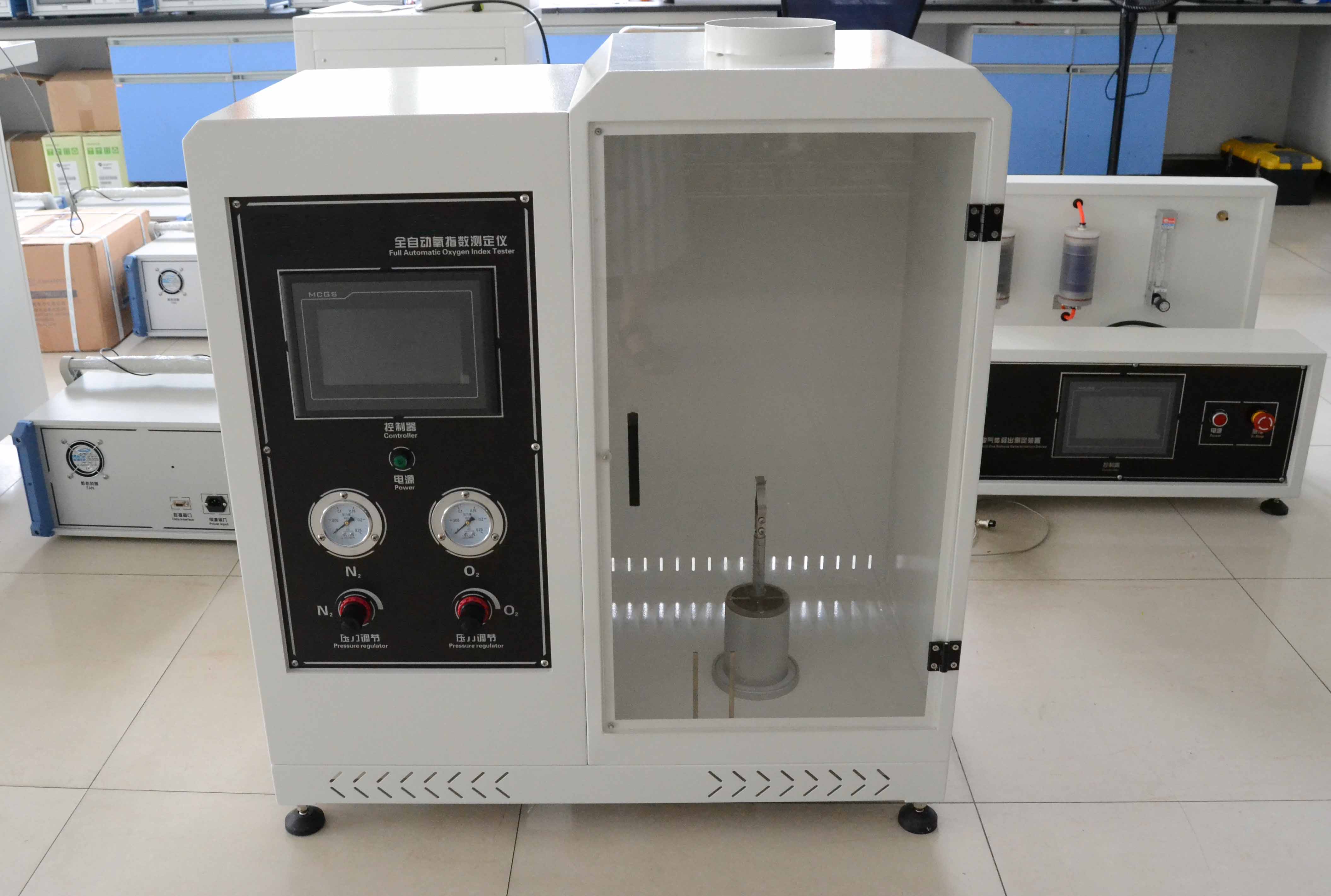 Oxygen index meter: Use oxygen and nitrogen mixed in proportion, accurately control the gas flow rate, and measure the minimum oxygen concentration required to maintain the combustion of the sample.