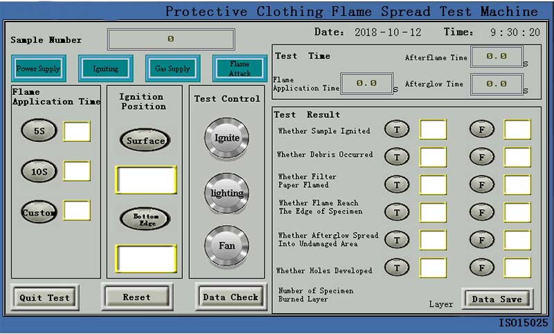 Designed and manufactured in accordance with the ISO 15025 standard for flame testing of protective clothing, the Protective Clothing Flame Spread Tester measures the flame spread of protective clothing under the impact of a small flame. This specialized instrument is primarily used to simulate the flame spread performance of protective clothing when assessing the fire hazard of the garment. It is used to determine the fire hazard of fabrics and other flammable materials with similar functional uses.